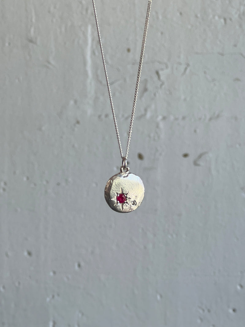 Lab grown dark red ruby and lab grown white sapphire honour pendant