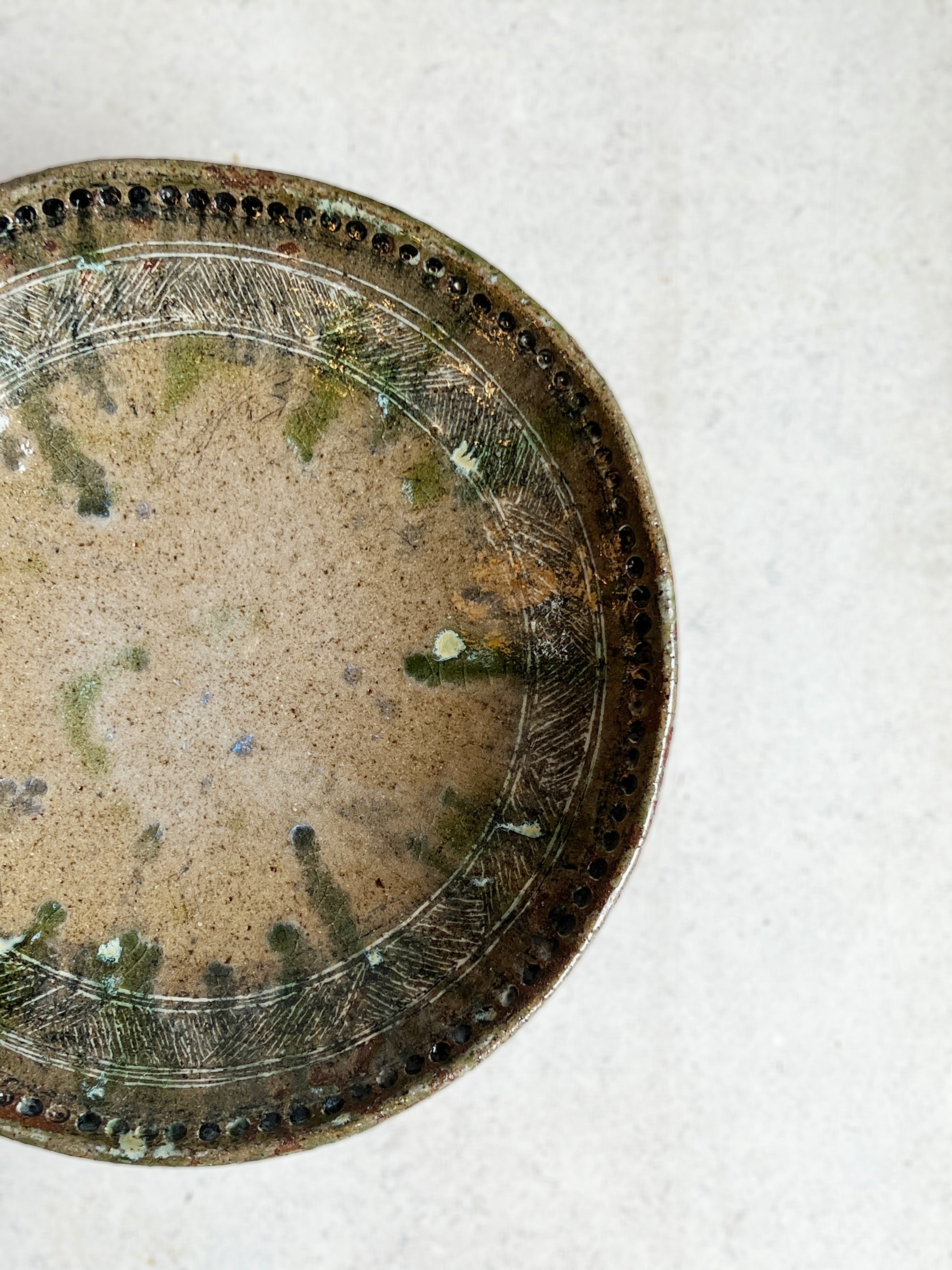 Wheel, coil and paddle formed… engobe, oxides and wood ash glaze.