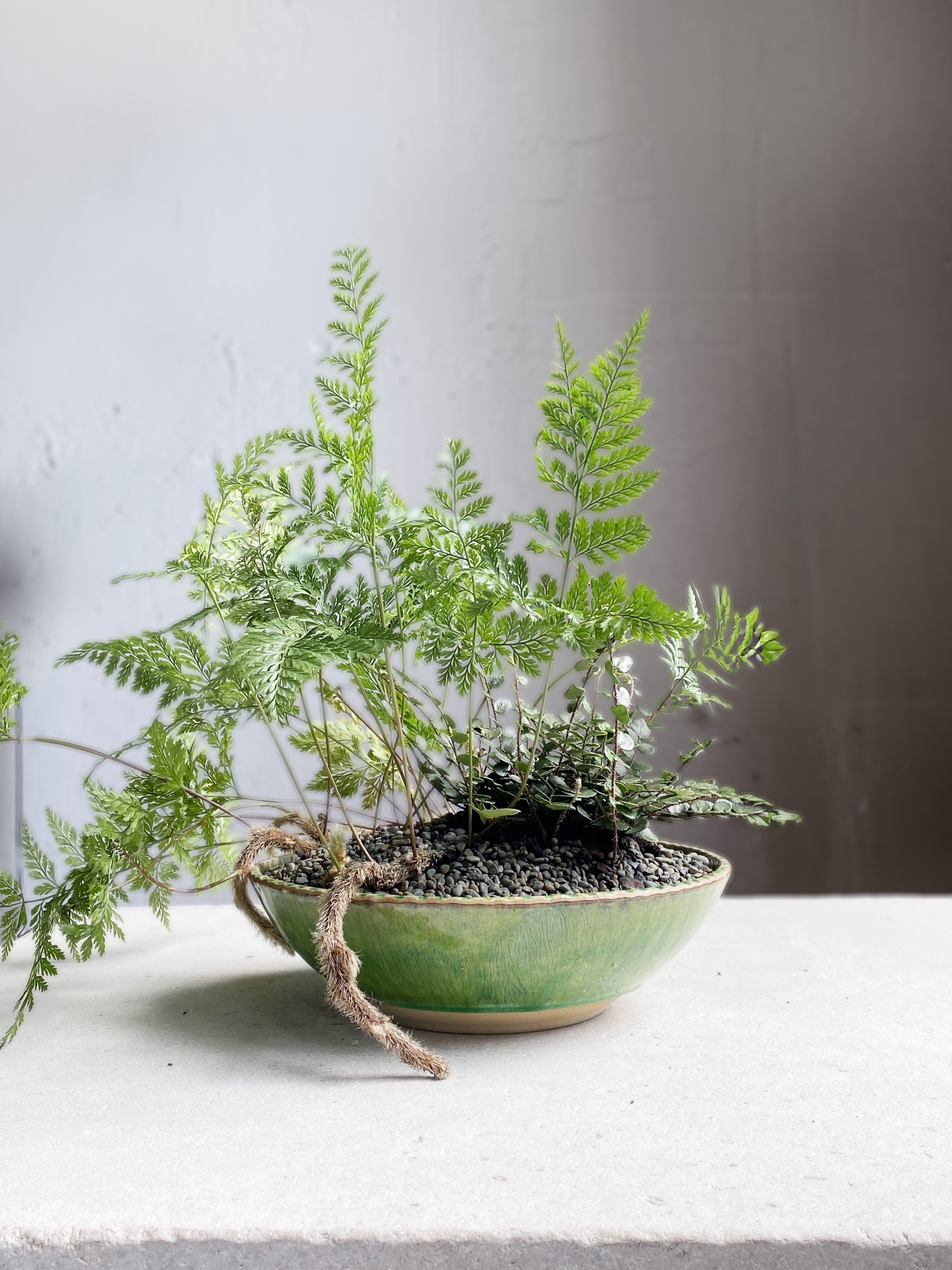 A sweet ceramic bowl planted in with an assortment of ferns, the perfect table centrepiece! keep me damp.