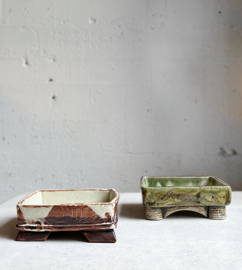 Tony Swanson has had a lifetime interest in Japan & its varied cultures which have influenced his approach to pottery. Although his mother was a potter, his background was more in graphic art & printmaking. Often using wild dug clays, he also makes all of his ash glazes from the burning of various local woods, leaves & lichens. He uses the natural environment to inspire his glazing & pottery shaping.