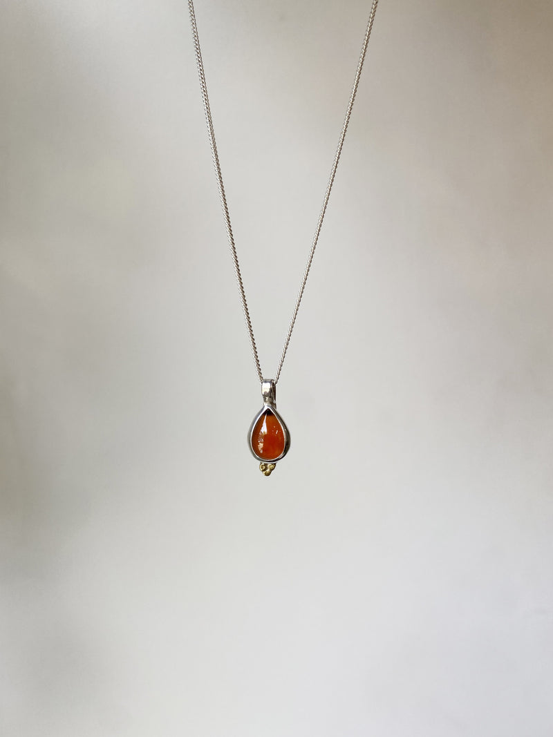 Vosso Hessonite garnet pear shape tiny drop necklace